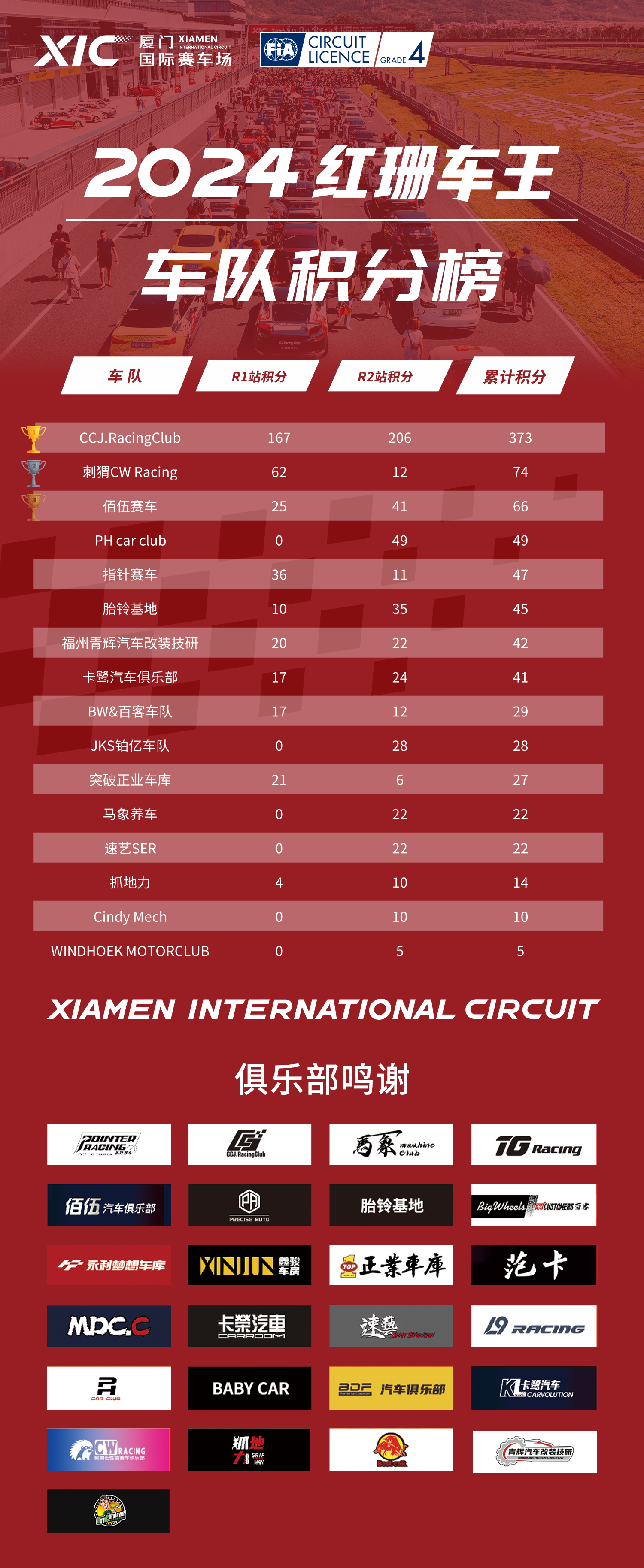 2024红珊车王R2站车队积分榜
