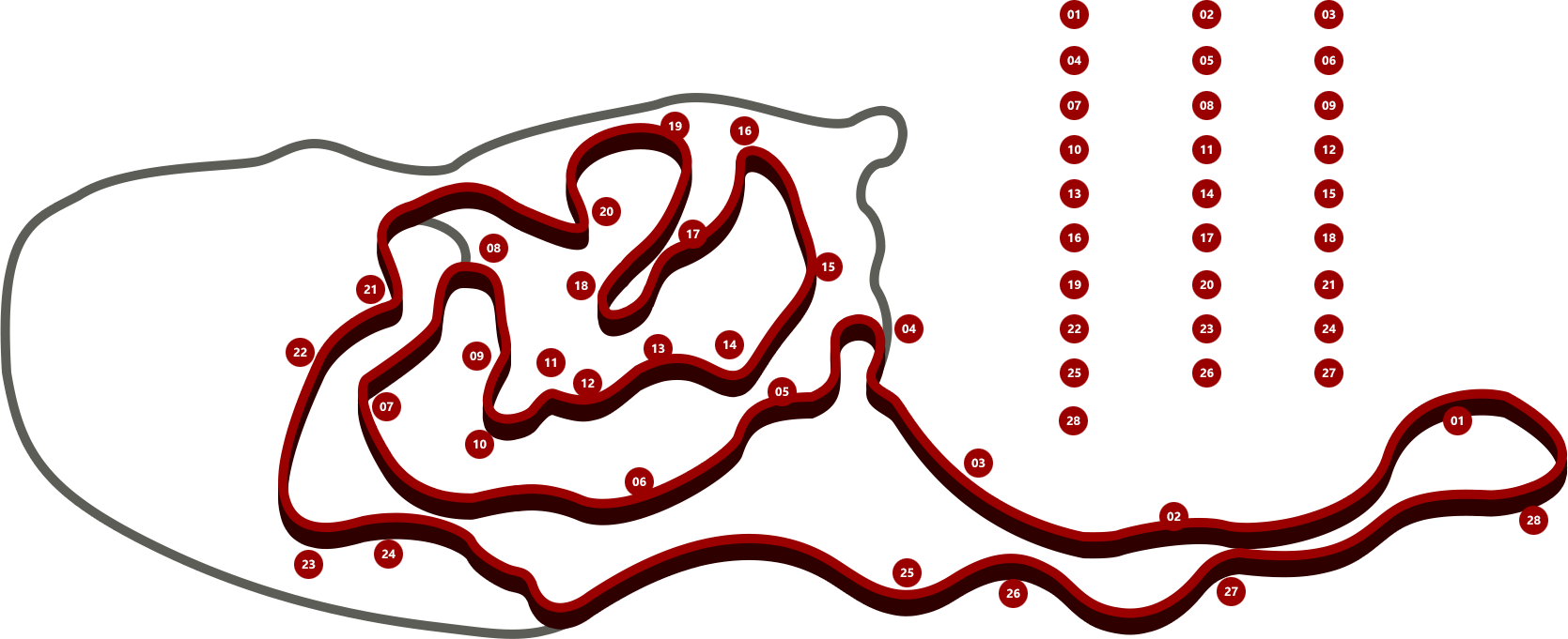 主赛道全长2.5KM,共20个体验科目,与丛林/穿越路段相比,探险路线跌宕起伏,环山路段使得路况较为多变,除对车手的技术要求外,也非常考验车辆的功能及越野能力,新增的路段,坎坷中让你有种想要去征服自然的冲动,整个过程充斥着激情与震撼。