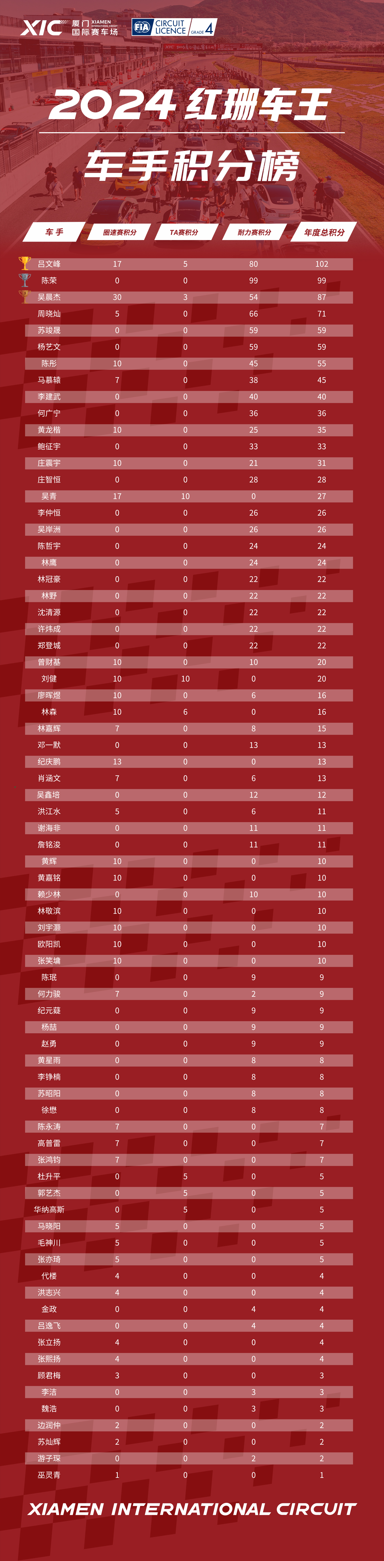 2024红珊车王R2站车手积分榜