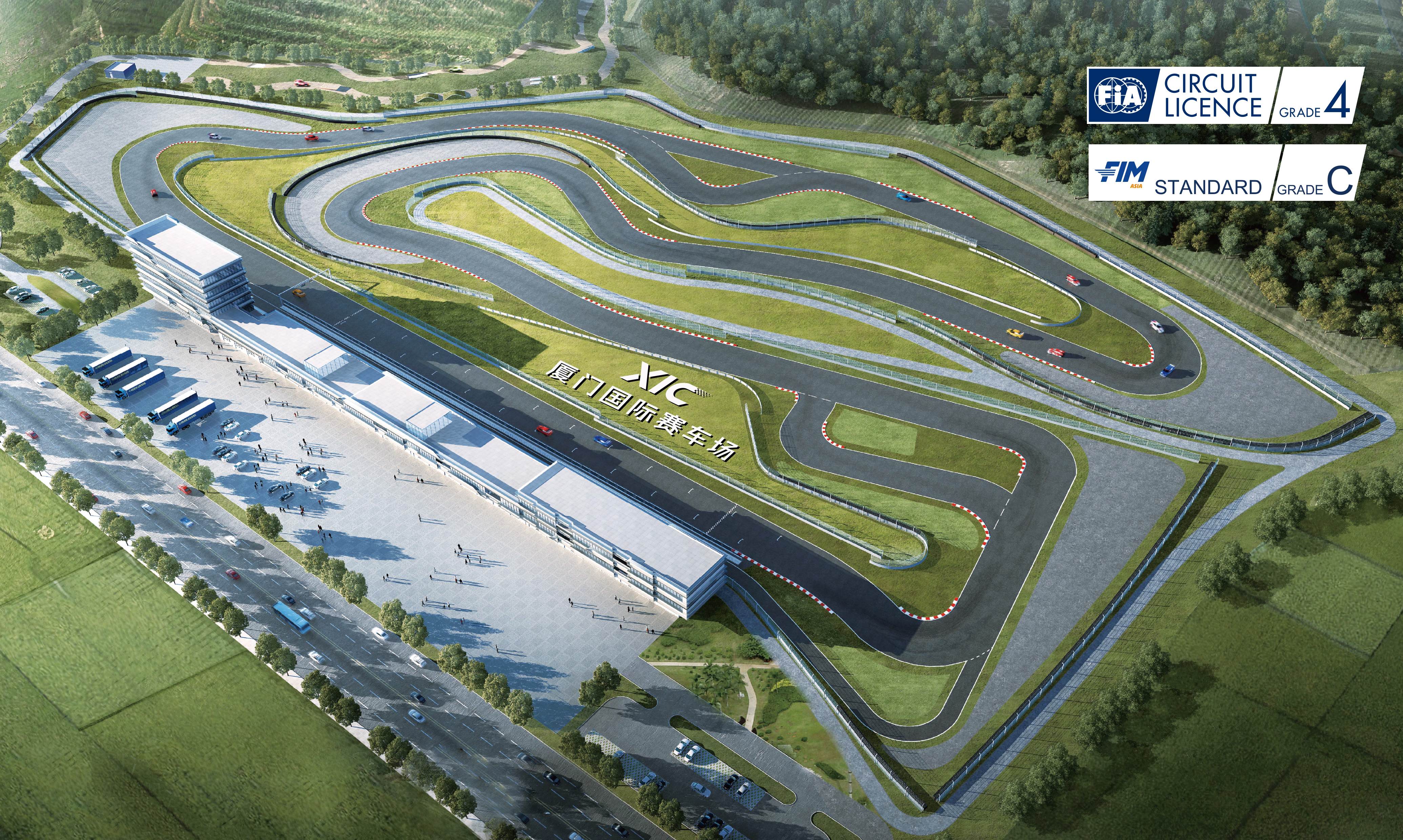 厦门国际赛车场是福建省第一个标准的赛车场,也是全国第14条通过国际汽联认证的赛道,同时它还是国际汽联推广赛车运动大众化在全球的第一个试点。赛道由国际汽联认证的赛道设计师姚启明博士担纲总设计,赛事大楼长度248米,建筑面积11000余平方米,一层设置27间P房,可用于设置维修区、迎宾区、展示区、休闲区等,能满足各种商业活动的需要。